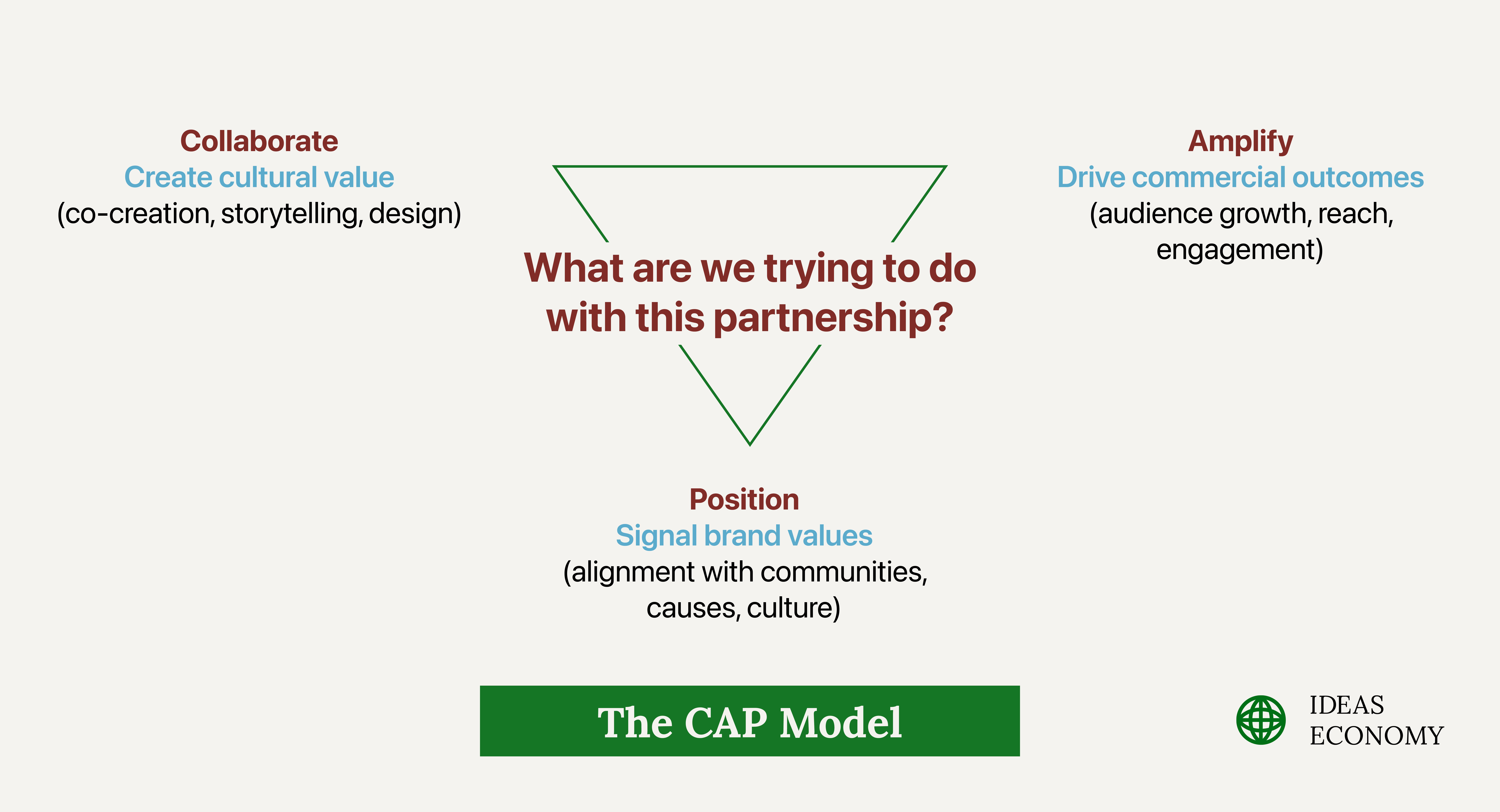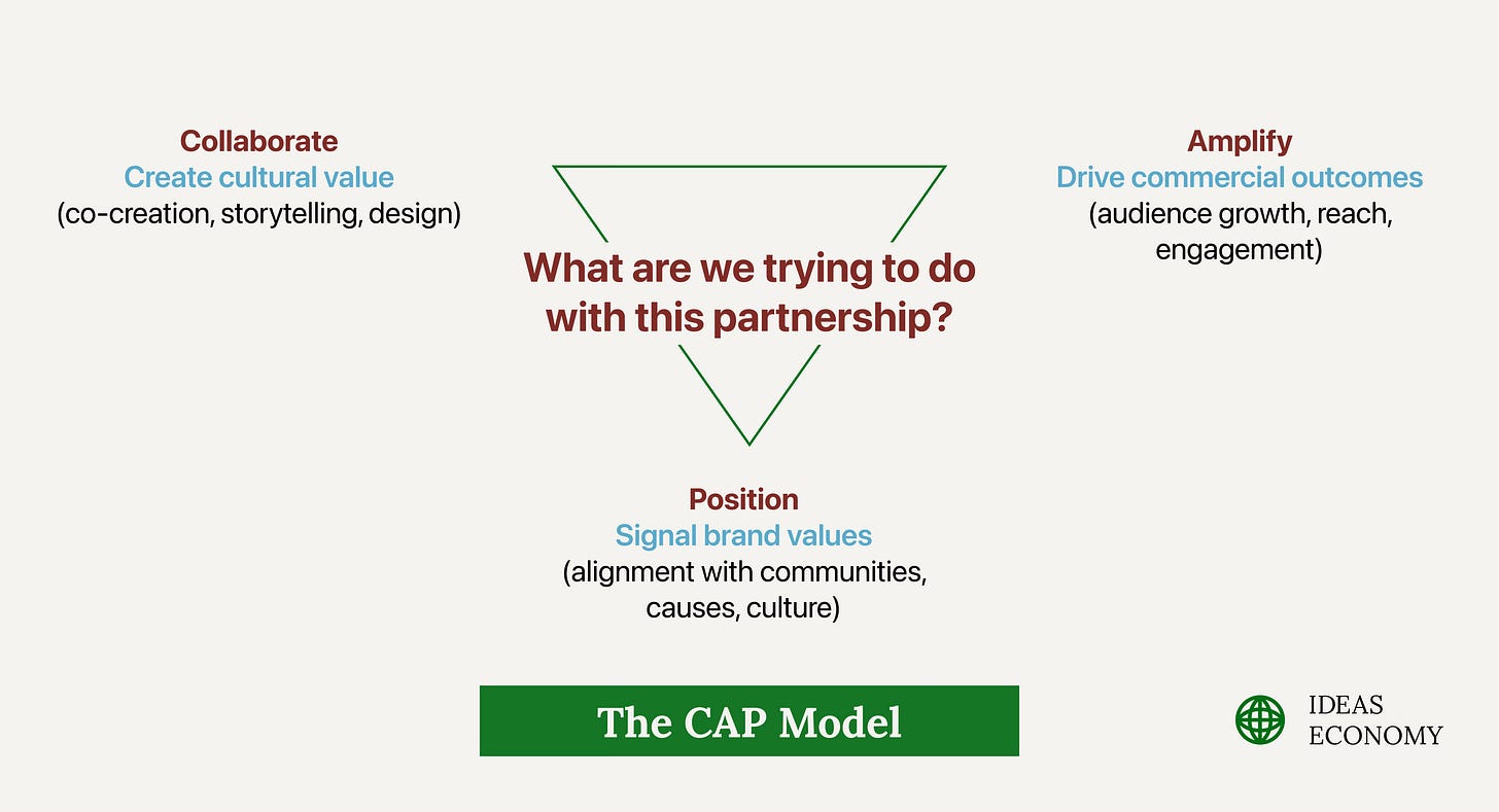 Key idea: Not all brand partnerships serve the same purpose. The CAP Model helps you quickly categorise them through three strategic lenses, so your execution matches your intent.