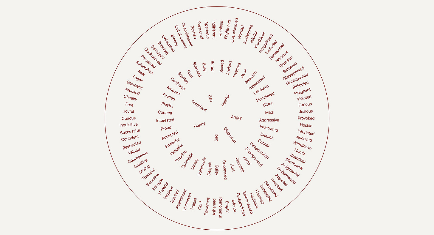 When you collapse emotion, reactivity, bias, and fear into one messy category, that in itself is a distortion. Think of the entire spectrum of human emotional experience. The Emotions Wheel is something you might have seen in a leadership course, or a therapy room. Do we really want to flatten all of that intel when making decisions? Or are we simply avoiding the work of understanding it?